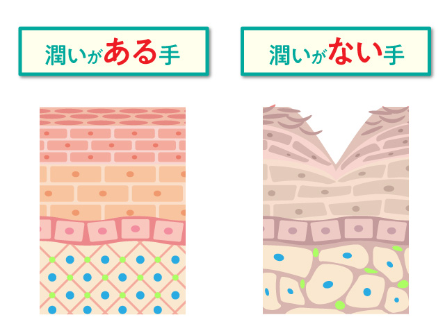 普通のハンドクリームでは、肌の表面は潤った感じがしますが、